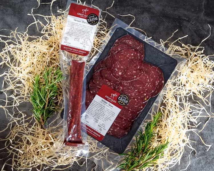 Our charcuterie package contains items from award winning Great Glen Charcuterie, A small family run business based in the Highlands which produce a range of specialist charcuterie using only the finest wild Scottish venison