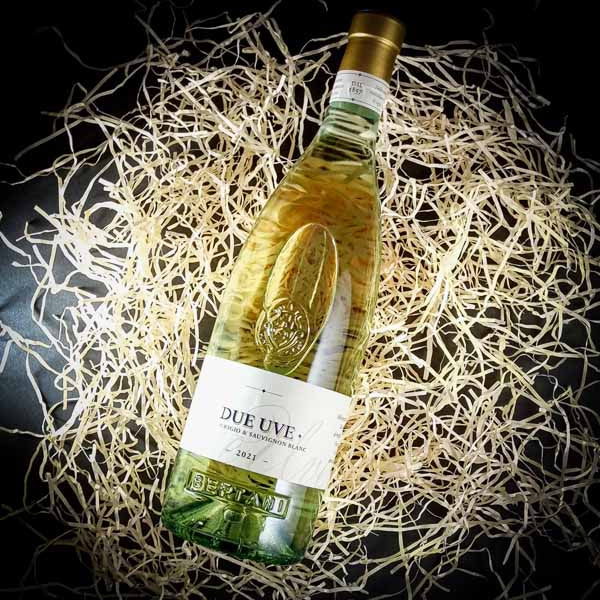 Due Uve Bianco combines the body and elegance of Pinot Grigio with the aromatic notes typical of Sauvignon Blanc, thus achieving a creation rich in personality and character.